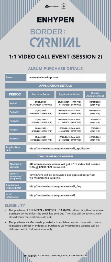 ENHYPEN [BORDER : CARNIVAL] 1:1 Video Call Event (Session 2) at www.mecimashop.com!